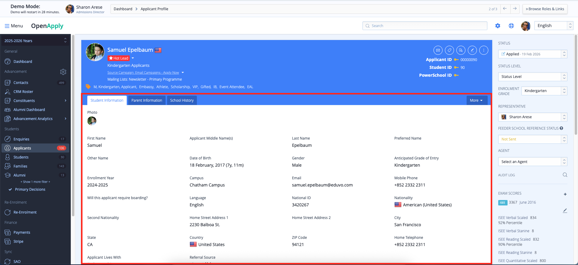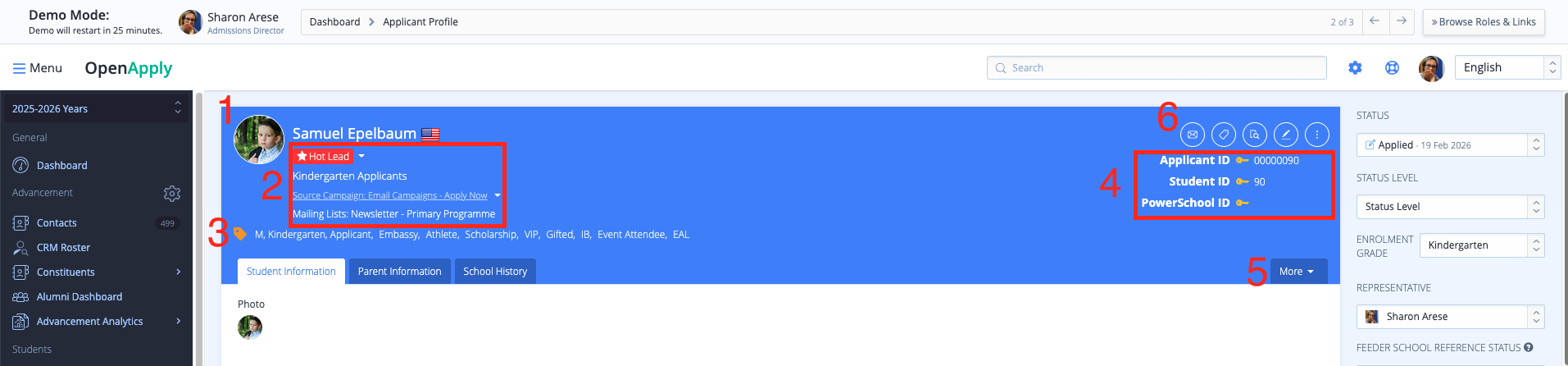 CRM Details – If your institution uses the CRM module, additional details such as source campaign, lead score, and other CRM-related data will appear in this section.